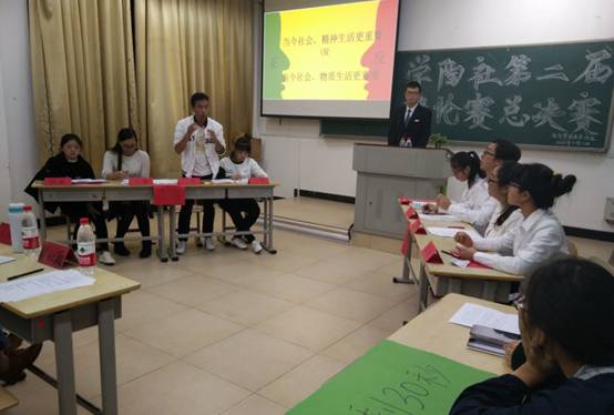 12月13日,经济管理系学陶社在东侨校区求真楼b304举办了第二届《巅峰对决》辩论赛决赛。参加本次决赛的有经管系思政教研室主任林心雨老师、四支决赛队伍以及评委和各系观众。本次辩论赛旨在丰富同学们的业余生活、活跃校园气氛,体现老员工朝气蓬勃、积极向上的精神状态,挖掘并培养辩论人才。