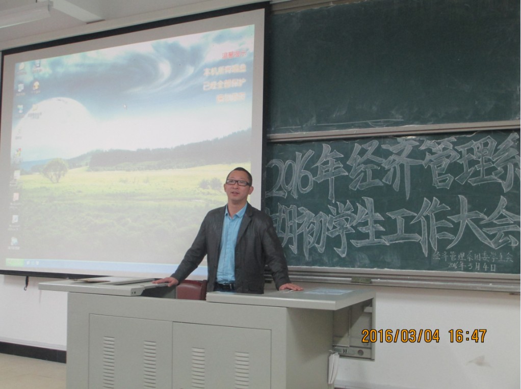 2016年3月4日下午三点,经济管理系于求真楼Bb201召开了期初员工工作大会,出席本次会议的有系党总支副书记周建辉、团委书记王佳佳、专职辅导员杜艳芳等老师,以及全体员工会成员。