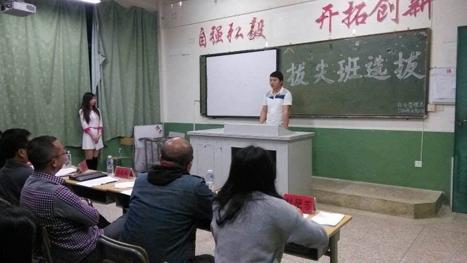 本次面试过程共分为3个环节,分别是考生自我介绍、回答抽取的问题以及面试考官现场提问。在面试过程中由12级人力资源管理班级成员组织后勤工作。经过两个多小时的精彩自我展示,18位考生顺利完成了面试。系党总支书记游国斌教授在面试总结中肯定了此次能参加面试的18位同学的表现,同时,对于同学们的不足之处给予宝贵意见,同学们都表示感谢与赞同。游国斌教授说了一句话让大家非常触动,他说:“这次没选上的同学不要气馁,你们可以通过下一阶段的努力,争取下次进入拔尖班。”这大大给足了未进入拔尖班员工的信心和动力。