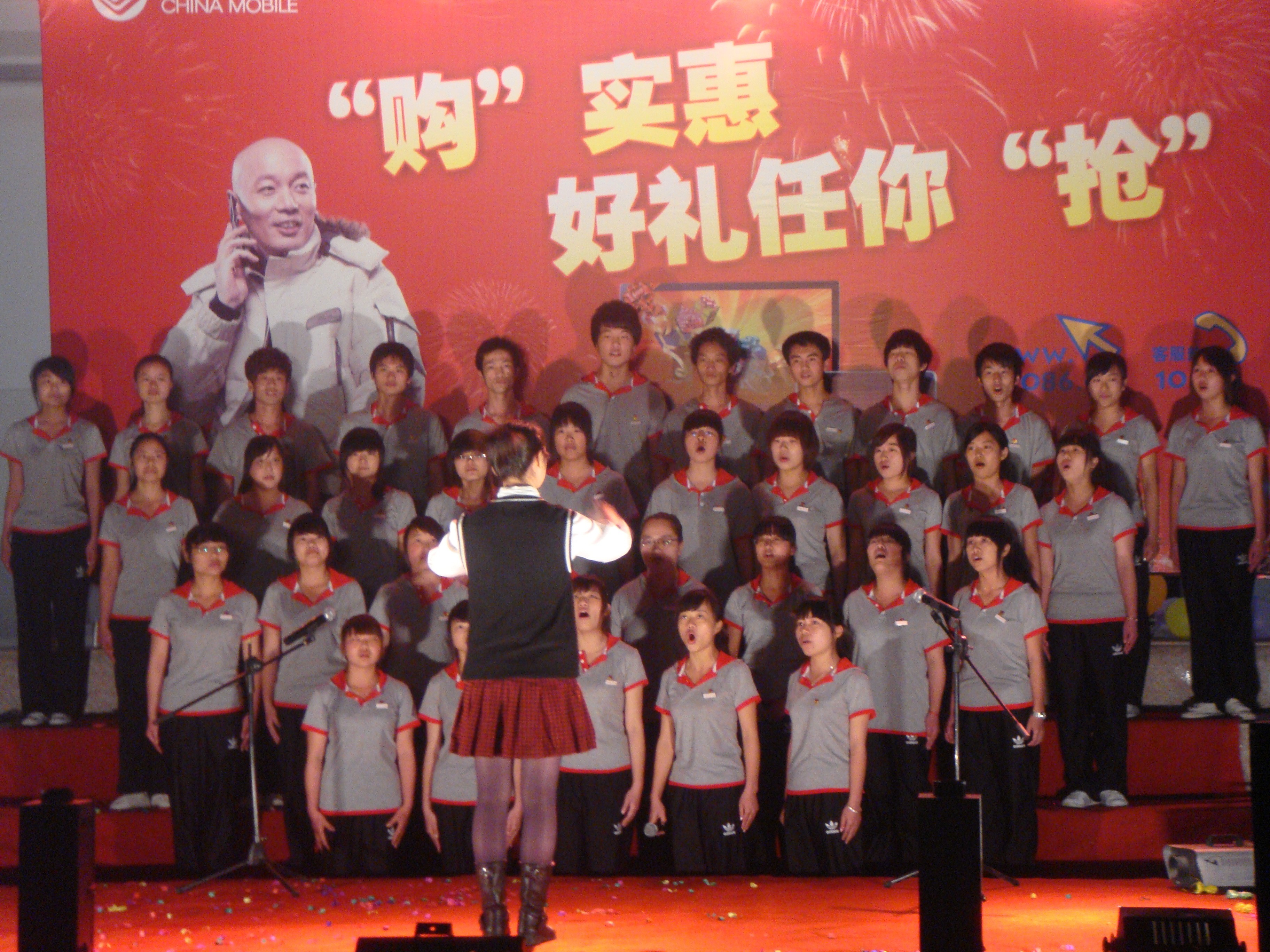 比赛在游国斌老师的开幕词中正式开始。一段精彩的开场舞后,09企管一马当先,以《爱我中华》和《爱因为在心中》拉开了比赛序幕。各参赛班级服装整齐,精神饱满,歌声嘹亮,上下场队列有序,比赛精彩纷呈,充分表达出员工爱国的火热情怀,唱响了拼搏奋进的时代主旋律。此次大赛得到中国宁德移动分公司的大力支持,中国移动宁德分公司为此次大赛提供了全套舞台设备并献上了精彩的舞蹈表演、神秘的魔术表演等,现场氛围一片火热。