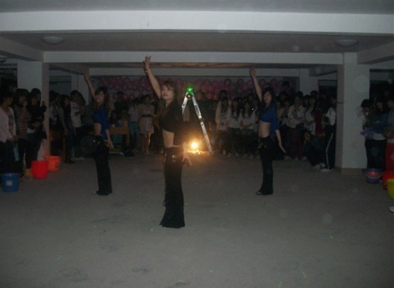 五彩的灯光闪烁,粉红的气球将现场装扮的美轮美奂。如梦如幻的音乐将我们带入了舞会优美的现场,首先为我们表演的是生物系带来的开场走秀,各式各样的造型以及搞怪的动作一会儿把们带入小时候、一会儿又忽然走入成人的世界。紧接着舞蹈《日不落》将现场的气氛带入正轨。一曲终、一首起。聚光灯下,有经管系带来的健美操表演将晚会的气氛推向高潮,劲爆的音乐再加上动感的舞姿她们阐述了老员工无限的活力展示了老员工的风采。一曲动感十足的健美操结束又有一曲十分炫感的舞蹈串烧呈现在我们面前,一系列优美的舞蹈迅速的引爆了在场的观众,虽然天空下着雨但是却不能浇灭我们心中的热情,震耳欲聋的掌声一阵高过一阵。