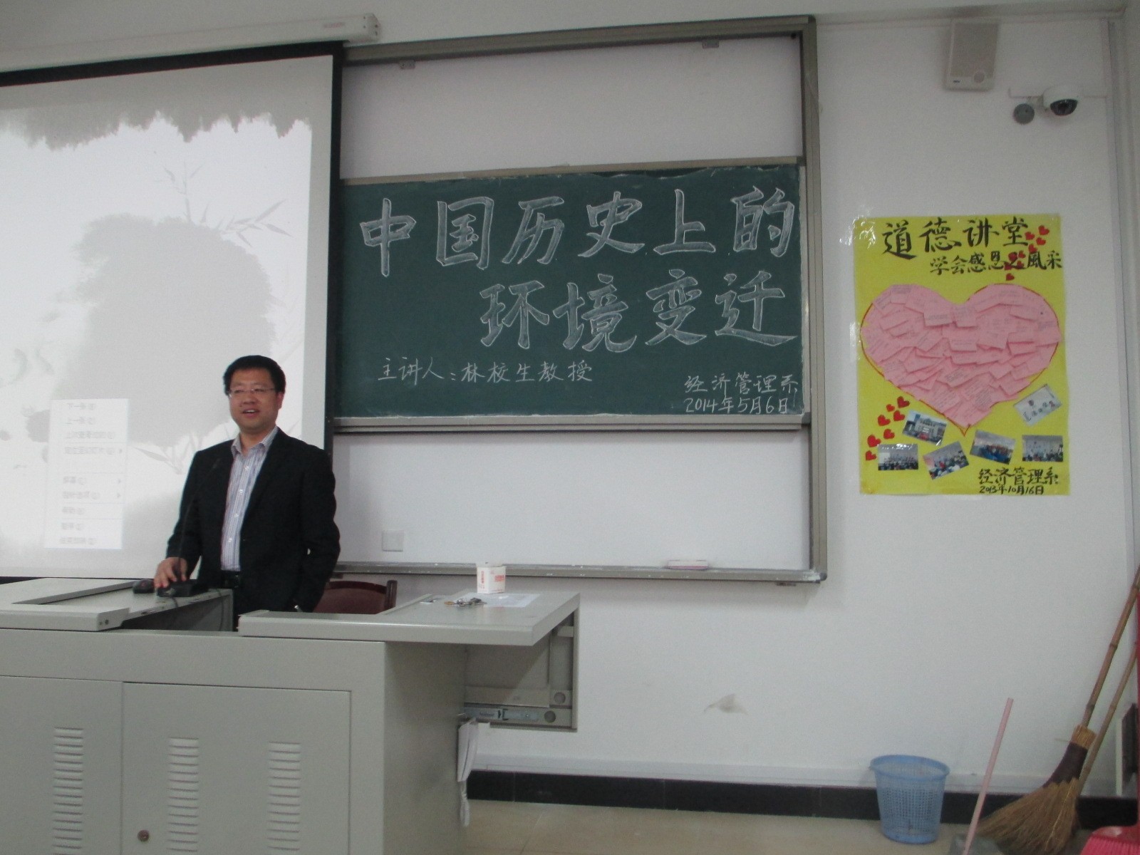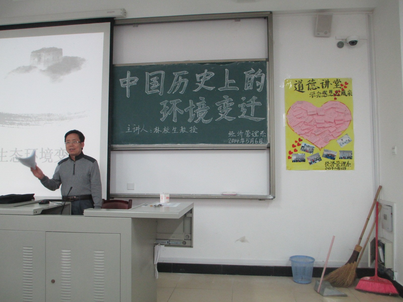 经济管理系于2014年5月6日下午邀请到PA平台资深教授林校生(原经管系主任)开展了一场题为“中国历史上的环境变迁”的专题讲座。2点45分,在求真楼Bb201讲座开始,经管系党总支书记游国斌教授致开讲词。出席此次讲座的有经管系全体教师及百余名同学。