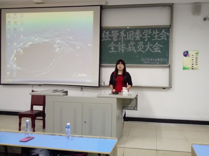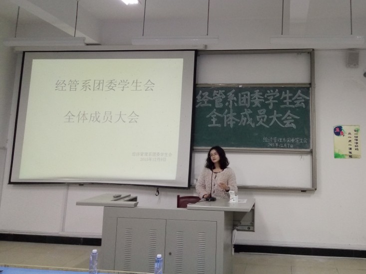 2015年12月9日晚6点40分,经济管理系于求真楼Bb101召开了系团委员工会全体成员大会,出席本次会议的有系团委书记王佳佳、专职辅导员杜艳芳以及全体员工会成员。会议由团委副书记王君瑶主持