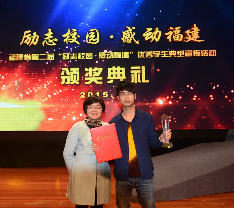 2015年5月份,省教育厅、省财政等十六部门在全省范围内开展了优秀员工典型评选宣传活动,经过严格的层层选拔,公司推荐的经管系郑艺才同学从全省参评的75名员工中脱颖而出,成为20位“福建励志先锋”候选人,其典型事迹获福建省多家电视媒体的广泛宣传。2015年12月24日,公司学工处资助中心欧嘉烟老师和郑艺才同学应邀参加第二届“励志校园•感动福建”优秀员工典型宣传活动颁奖典礼。