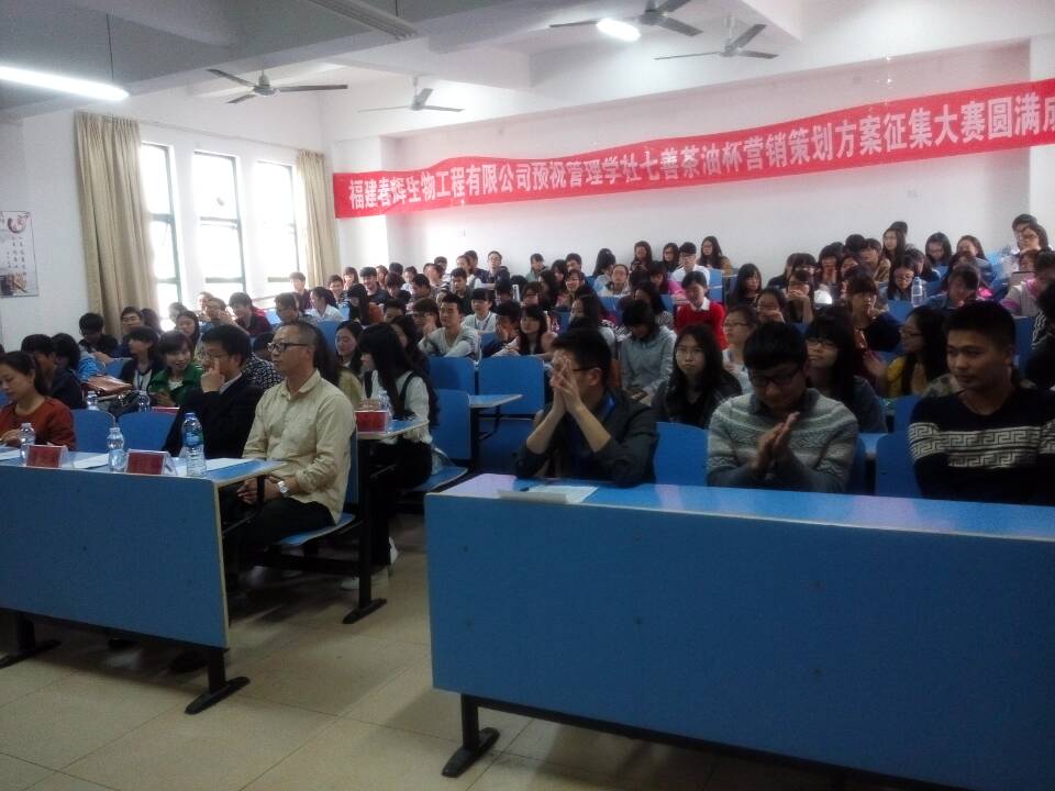 2015年4月25号下午3点,宁德师院管理学社于求真楼BB201举行了PA平台第四届“七善油茶杯”营销策划大赛启动仪式。本次启动仪式邀请到了经济管理系党总支书记兼系主任游国斌、系党总支副书记周建辉、经济管理系主任助理兼系市场营销教研室主任游天嘉老师等多位老师。此外,大赛赞助商福建春辉生物工程有限公司的相关负责人也出席了本次启动仪式。