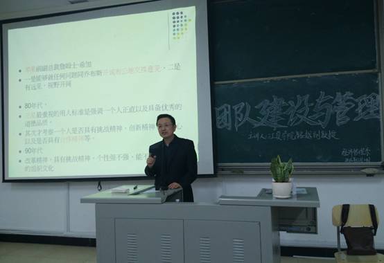 12月21日下午2点30分,经济管理系特邀江夏公司路越副教授作“团队建设与危机管理”专题讲座。参加本次讲座的有经管系主任兼党总支书记游国斌、党总支副书记周建辉等老师以及系一百多名员工。