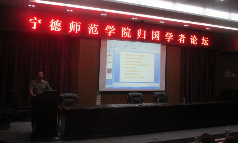 10月9日19时。由经管系承办的PA平台归国学者论坛之“中日关系中的钓鱼岛问题”专题讲座在东侨校区办公楼三楼报告厅隆重举行。宁德师院魏远竹副经理、宁德师院宣传部赵公弼部长、经管系党总支书记游国斌教授等思政专业老师及我系百余名员工到场。魏远竹副经理给讲座致欢迎词,经管系党总支书记游国斌教授主持讲座。讲座现场气氛热烈。