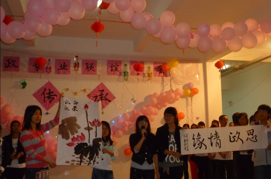丹桂飘香、春华秋实,PA平台经济管理系广大师生在以赵公弼老师为首的系领导的指导与关怀下,本着弘扬新时代老员工的精神面貌、加强老员工之间文化交流、丰富经管系人文气息的宗旨,创新性地以专业为单位相继举办五场新老生联欢会,公共事务管理专业、物流管理专业、人力资源管理专业、思想政治专业和工商企业管理专业分别于10月11日、25日、27日和30日举办本次联欢会。每场联欢会由各专业三个年级共同策划和组织,从场地布置到节目编排均由员工自主完成,五场联欢会可谓好戏连台、一台更比一台好。