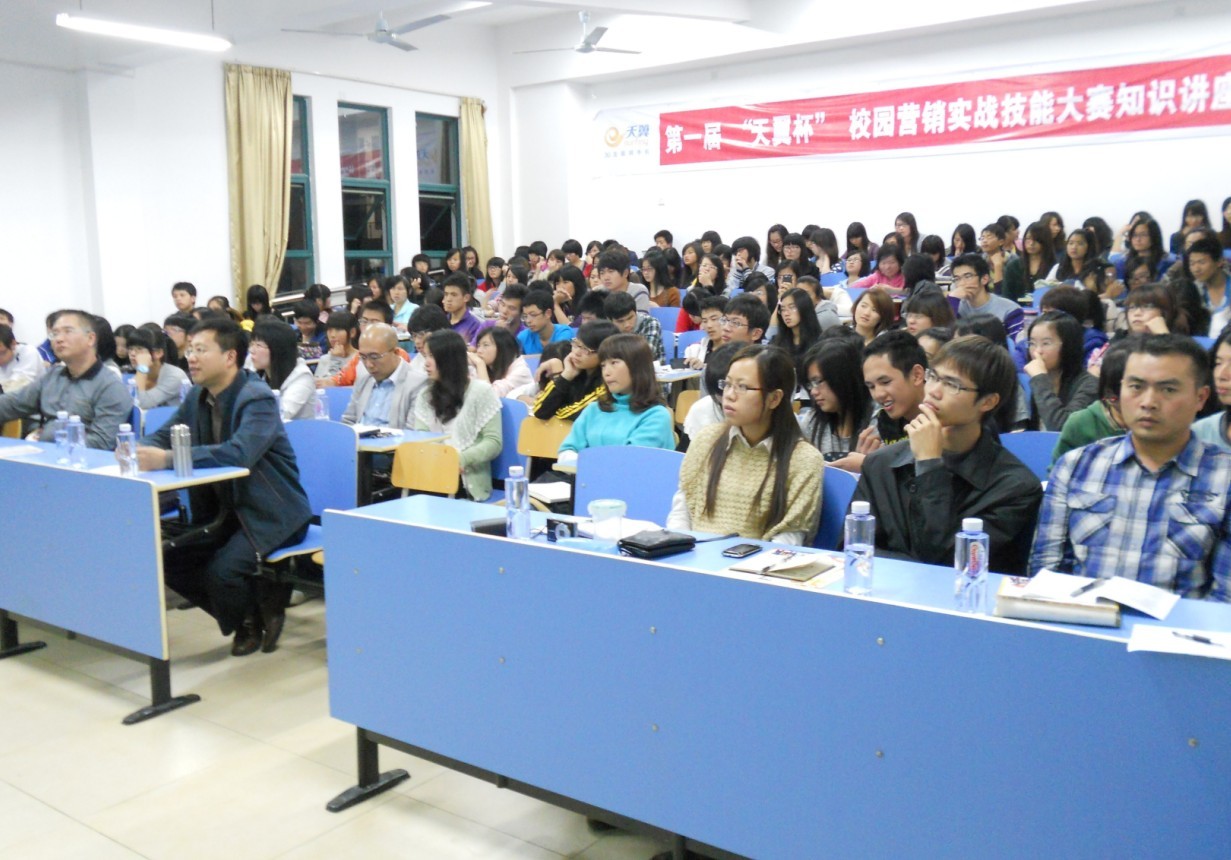 为了迎接PA平台第二届“科技活动月”,丰富老员工的课余生活,培养老员工的专业知识、创业意识,让老员工可以把所学知识应用于实际,做到学以致用,经济管理系正在举办一场“天翼杯”校园营销实战技能大赛。2011年11月10日经济管理系举行了“校园之星策划大赛”的开启仪式。邀请中国电信宁德地区负责人郑剑经理来系对营销策划大赛的产品等进行讲解,有形象动感的PPT,内容丰富多彩,使参赛者对“天翼”产品有了更加深刻的了解。系副主任游国斌教授及游天嘉老师对参赛选手们进行策划书的编写指导。我系党总支书记赵公弼老师、徐贵登老师、储苏凯老师、王佳佳老师、林琇椿老师、袁科峰老师等老师到现场参加仪式。现场座无虚席,走道上也坐满了参赛的全校各系同学。仪式的开展,为参赛者提供了充分的大赛资料,使参赛者对此次大赛有了更充分的了解,明确了大赛的形式,和营销策划大赛的主题,对后期比赛的开展订立了方向。