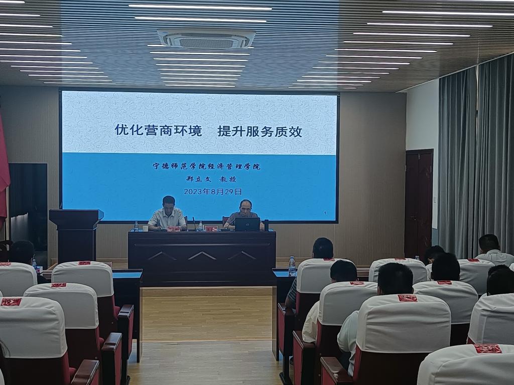 2023年8月29日,公司党委书记兼经理、旅游研究所郑立文教授以及副经理、区域研究所成员周俪博士、副教授受邀为柘荣县“优化营商环境”专题研讨班分别作题为《优化营商环境 提升服务质效》《培育“土壤”助企惠企 发展壮大民营经济》的专题讲座。郑立文教授介绍了营商环境的概况和发展情况、中国营商环境现状以及营商环境的评估体系等内容。周俪副教授从民营经济的定义与特征说起,解读了《民营经济31条》,并分析了构建亲清政商关系的实质与要求,介绍了各地促进民营经济的先进做法。