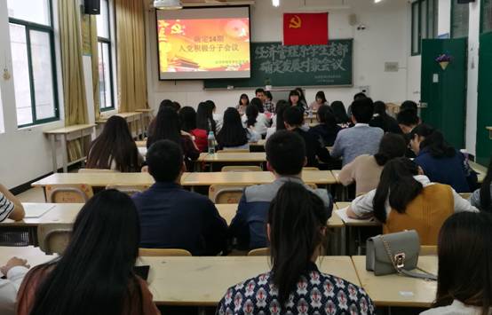 2017年4月18日晚6点,经济管理系于东侨校区求真楼bb304召开确定第十四批入党积极分子、确定发展对象、学习“两学一做”三项会议。到会的有经管系团委书记王佳佳、员工支部书记邱文君以及入党积极分子、发展对象等。