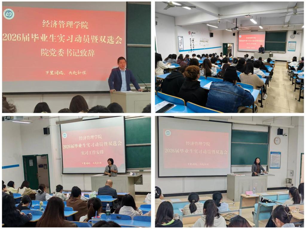 8:20-8:50,实习动员会在求真楼 BA201、BA301 两个分会场同步开展。会上公司党委书记王楠楠结合当前就业市场对经管类人才的需求特点,强调 “实习不仅是理论落地的过程,更是提前适应职场规则、积累行业资源的关键阶段”,并叮嘱员工要严守实习单位规章制度与实习安全要求,主动向指导老师反馈实习动态。各专业系主任详细解读实习教学计划,结合往届员工在跨境电商运营、品牌推广等岗位的实习案例,明确 “注重实操能力、强化沟通技巧” 的实习重点。