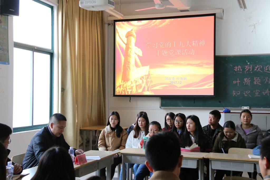 叶斯颖书记从党和国家面临的问题、党的创造力、党群关系等三个方面引入宣讲主题,对中国特色社会主义思想进行分析概括。他说,要实现全面建成小康社会这个奋斗目标,就要不失时机深化重要领域改革,坚决破除一切妨碍科学发展的思想观念和体制机制弊端,构建系统完备、科学规范、运行有效的制度体系,使各方面制度更加成熟更加定型。他还就当前今后时期的主要任务、新时代党的政治建设新要求等方面内容进行深入阐释,鼓励同学们了解与感悟十九大精神,不忘初心,砥砺前行,促进自身与集体的发展进步。