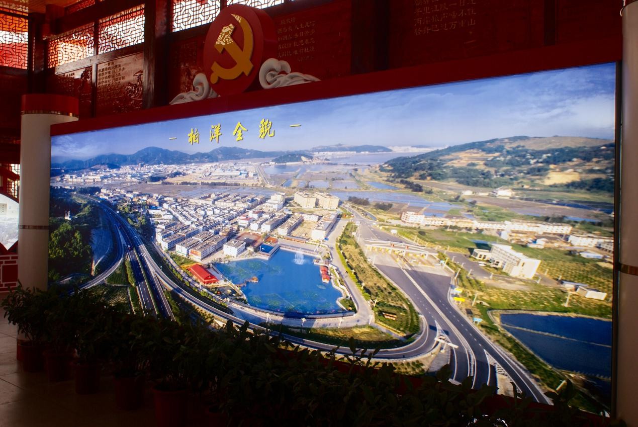第一站,实践队来到柏洋新村,通过新村走访、村史馆参观,实践队了解到,自2000年起,柏洋村党支部通过争取国家“造福工程”项目,利用高速公路弃渣地,规划建设新式连体别墅,陆续实现了21个“五不通”自然村的搬迁,现中心村人口达到513户2130人,新村兴建了柏洋小学、幼儿园、村活动场所、通村公路硬化、新村路灯改造,配套完成了新村水、电、路、通讯、数字电视等基础设施,大大改善村民的人居环境和教育环境。新村的道路、房前屋后都进行了绿化、美化,彰显了新村“新、绿、亮、洁”。新村外墙实现立面整治,白墙墙绘上党的方针和政策、畲汉文化,充分彰显了新时期社会主义文化自信。