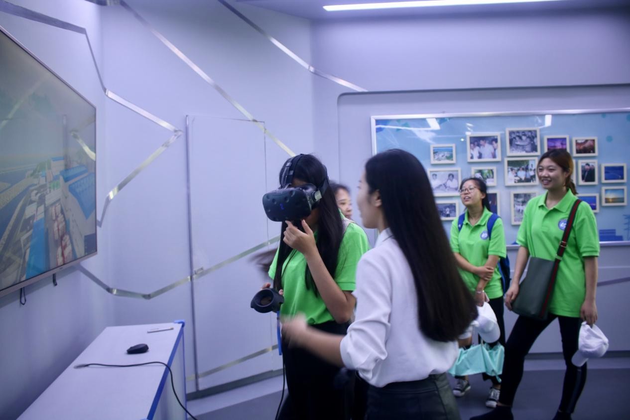 第四站,实践队来到宁德核电站,近距离感受宁德核电站“让天更蓝,水更清”的绿色环保形象。实践队在88米的观景平台上鸟瞰全厂,并参观了核能会展中心,通过讲解员现场讲解、交流、亲身体验等各种形式,更进一步的了解核电站的工作原理及核电的相关知识,深入了解了核电安全设施与防范措施。在核能会展中心里,实践队成员被两台VR体验设备所吸引,纷纷上前体验了一把, VR让同学们身临其境,仿佛置身于机组发电现场。参观宁德核电站,让同学们深刻感受科技文化的力量。