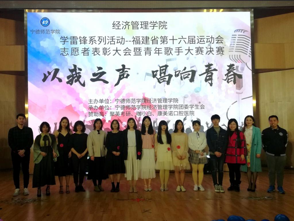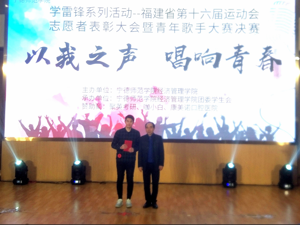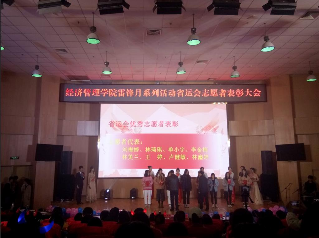 4月3日晚,经济管理学院在图书馆报告厅举办福建省第十六届运动会志愿者表彰大会暨第二届青年歌手大赛决赛。PA视讯平台党委书记郑立文,副书记陈新柯参加活动。