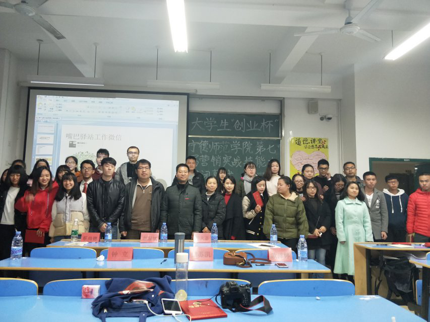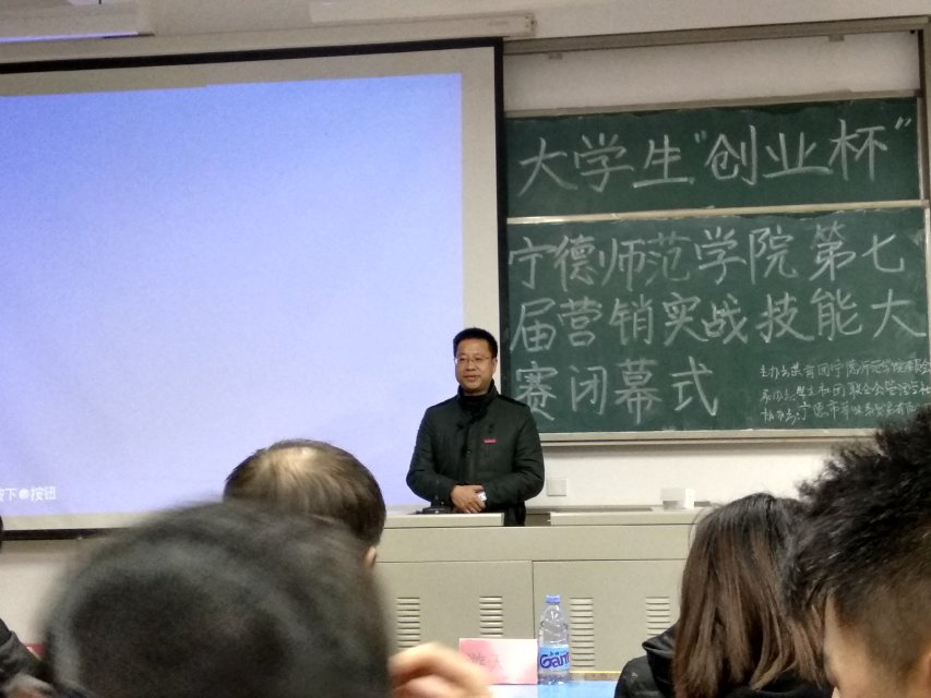 PA平台第七届“创业杯”营销实战技能大赛决赛于2017年12月22日晚上在东侨校区求真楼举行。担任此次活动的评委有PA视讯平台经理游国斌教授、市场营销系主任游天嘉副教授、创新创业教研室主任储苏凯老师、蔡尚德副教授、辅导员王佳佳老师、管理学社指导老师欧洋婷老师,以及本次大赛赞助商、宁德市莘味泰贸易有限公司负责人、2016级市场营销2班钟立同学。