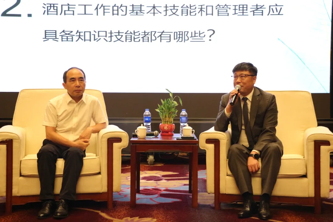 活动伊始,郑立文书记和嘉华酒店总经理乌恩琦先生作为现场嘉宾,面对面为员工提供关于学习、实习、毕业、就业等方面的专业指导。郑立文就员工关心的校企合作、实践教学等进行回答,指出要进一步加强公司与酒店的产教融合。乌恩琦分享了他二十多年的酒店从业经历,并就员工提问的关于酒店的相关问题进行了详细解答。嘉华酒店的部门总监也为同学们分享了各部门的情况,并就大家特别关心的实习问题做了详细介绍。