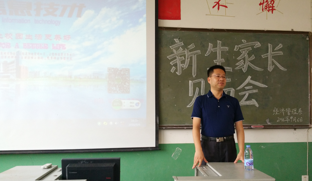 6日下午,我系新生家长见面会在21号楼208教室召开。游国斌教授为到场新生家长详细介绍了公司及我系的具体情况,周建辉副书记为新生家长解答了一些专业上的疑惑,最后新生的辅导员邱文君老师发表讲话,为本次新生家长见面会作了总结。