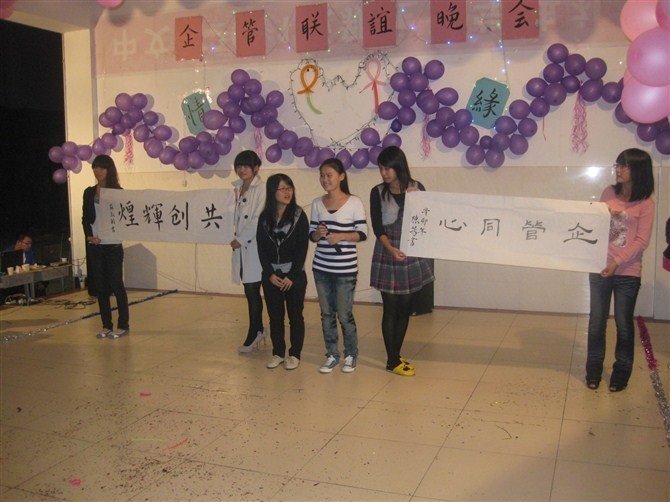 2011年10月30日晚7:00,我系企管专业在求真楼举办了以“情谊”为主题的迎新联谊晚会。整场晚会异彩纷呈,同学们纷纷献技献艺,使得整场晚会精彩新颖,不落熟套。晚会为大家带来了很多快乐,促进了同学们之间的友谊,增进了同学们的感情,加强了师生之间的凝聚力,及同学们之间的团结合作精神。虽然这场晚会结束了,但是学弟学妹们企管专业的旅程才刚刚开始,在今后的日子里,我们将携手并肩,共创企管辉煌!