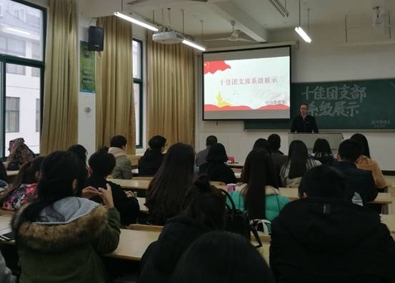 2017年3月10日下午4点经济管理系于东侨校区求真楼bb304召开十佳团支部系级展示会。参加本次展示会的有经管系系主任兼党总支书记游国斌、党总支副书记周建辉、团委书记王佳佳、员工党支部书记邱文君以及各班团支部代表、部分员工会成员。共有7个十佳团支部参与展示。