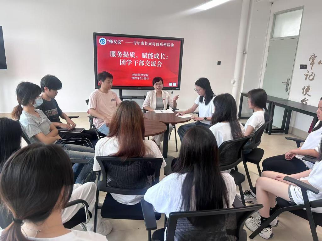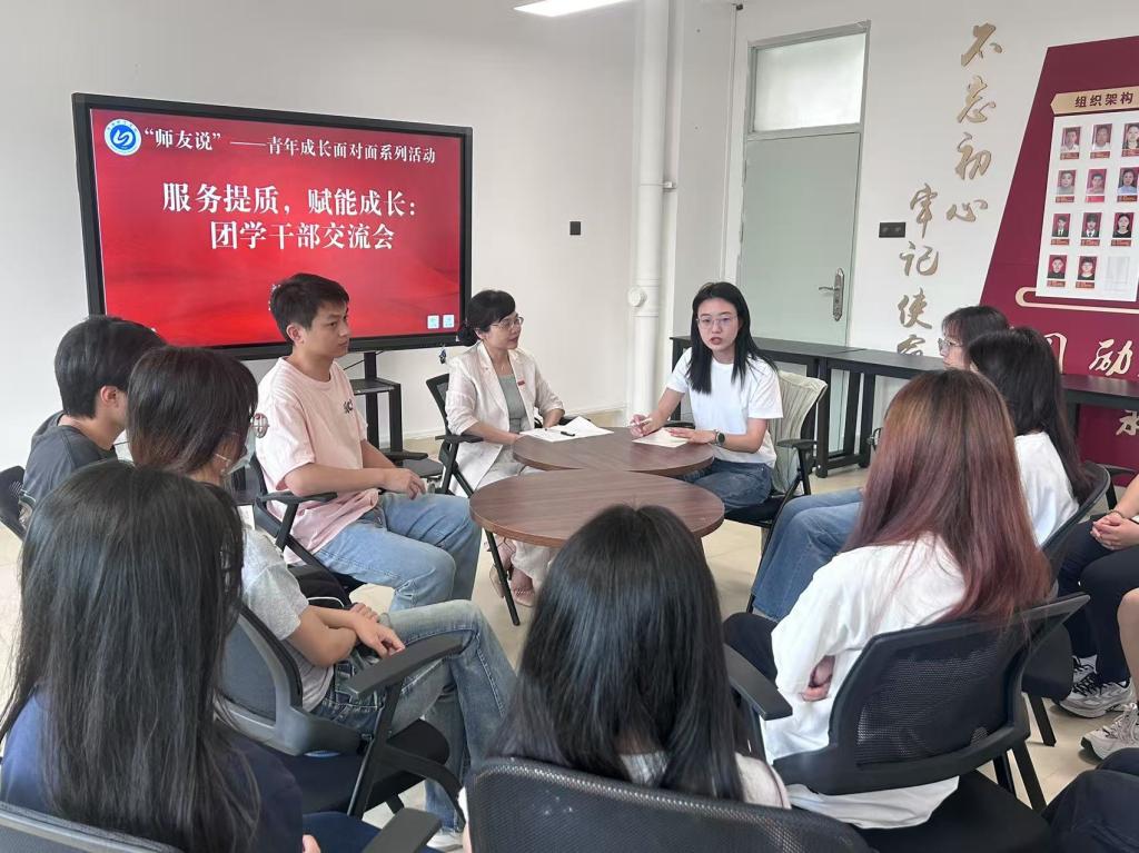 为进一步提升团学干部的服务能力,5月20日,公司在员工社区第三园区党团活动室开展“师友说”——青年成长面对面系列活动之“服务提质,赋能成长”团学干部交流会,公司党委书记丘怡、团委书记范圣辉、辅导员宋琴和团学干部代表参加。