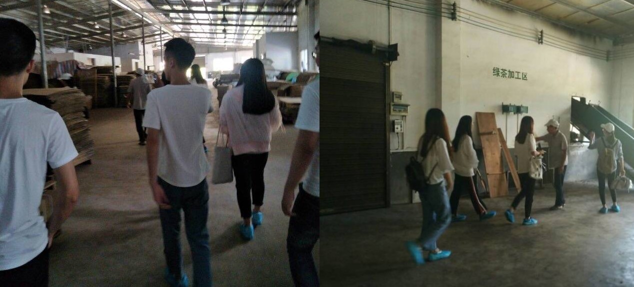 在第二阶段中,团队来到了洋中镇陈洋村的天湖山茶厂。在对天湖山茶厂的调研中,通过与天湖山茶厂的厂长的交谈中,了解了该茶厂的产茶和一些销售情况。并且在厂长的带领下,参观了茶厂的生产车间,了解茶厂的专业化生产、多品种生产。由于正值茶叶加工期间,有幸观看了茶叶包装过程。在此,团队对茶叶的生产、加工、包装、销售有了一定的了解。