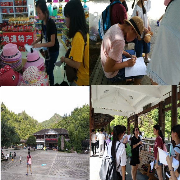 团队成员乘坐汽车历时三个多小时后到达白水洋,成员们各自分工合作,积极对当地居民以及外来游客展开调研。以问卷的形式了解消费人群的心理,其中也包括了商家以及白水洋景区的服务人员。调查表分为消费者和商家两份,以便团队能更加全面细致的分析整合。进行调查问卷表填写的同时,成员们也通过自己的亲身体验和直观感受了解景区的消费心理。