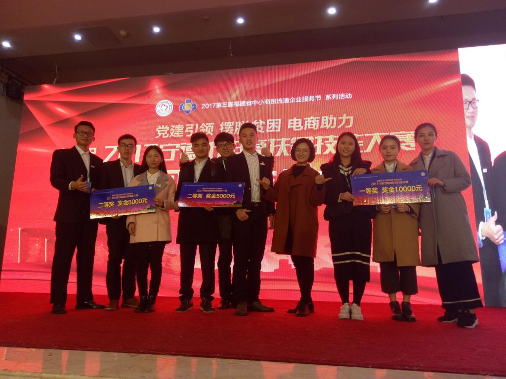2017年12月15日下午,PA平台经管院3队9名来自市场营销专业的同学经过初赛、复赛两轮筛选入围2017年宁德市电商扶贫大赛总决赛,由杜艳芳老师带队和若干名同学组成的亲友团一起到现场观摩,决赛在福安市会展大酒店隆重举办。