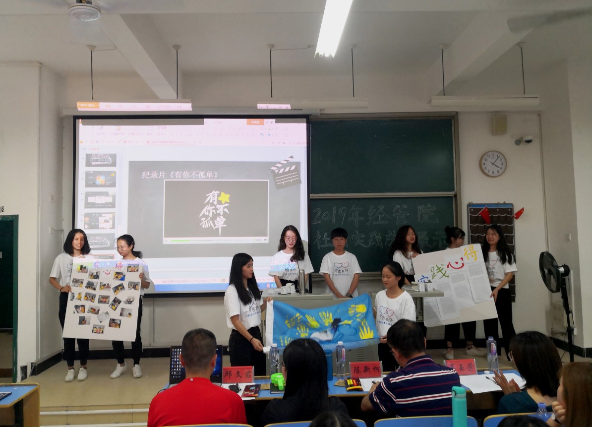 各实践队通过PPT展示,现场表演等形式展示社会实践成果。周宁花卉扶贫调研实践队,调研当地花卉产业,深入了解扶贫模式;“助梦古田科技支农”队,深入古田县鹤塘明艳合作社了解其带动当地经济发展的模式,从老员工的角度提出了关于创业的十点思路。霍童旅游调研队充分发挥了旅游管理服务专业特色,走进古城霍童,了解当地文化促进旅游经济的发展。“蓝胖子——携爱前行”队主题内容是关注自闭儿童,在实践中,他们带着小朋友一起学习、玩耍,陪伴他们成长。