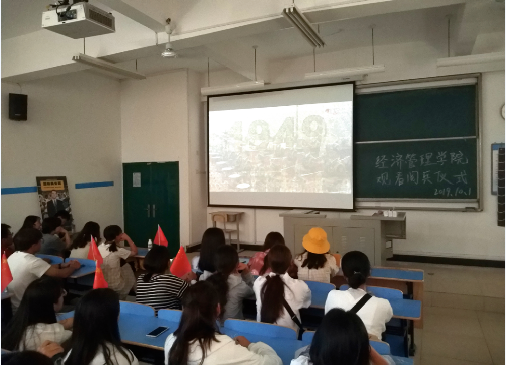 前后三个小时的观看,同学们全程热情饱满,民族自豪感和爱国激情在每一位老员工的心中油然而生。 2017级国际商务1班的戚乐同学谈到,“一场阅兵看下来,太多的细节让人泪目!今天,自己已经成为大三的员工了,看着屏幕里壮观的大阅兵仪式,加之这些天感受着周围浓浓的庆国庆氛围,才真正体会到什么是‘举国欢庆,盛世繁华’。”2018级旅游管理教育专业的陶怡如同学深情表示,“最令我印象深刻的是习主席讲的“伟大的中华人民共和国万岁”“伟大的共产党万岁”“伟大的中国人民万岁”,这三句话使我的自豪感油然而起。正是有了爱国先烈的前仆后继,才有现在发展日益月新的中国。中国的未来将由我们接力,我们一定要奋力学习,报效祖国,让中国更加辉煌。”(文/杨宛容)