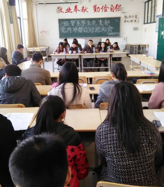 2015年1月13日下午3点,我系于求真楼B304教室召开了经济管理系员工党支部党内外群众讨论大会。出席本次大会的有我系员工党支部书记储苏凯、系团委书记王佳佳、专职辅导员杜艳芳等老师,12名员工正式党员,6名预备党员以及参加群众讨论的18名同学。大会由储苏凯老师主持。