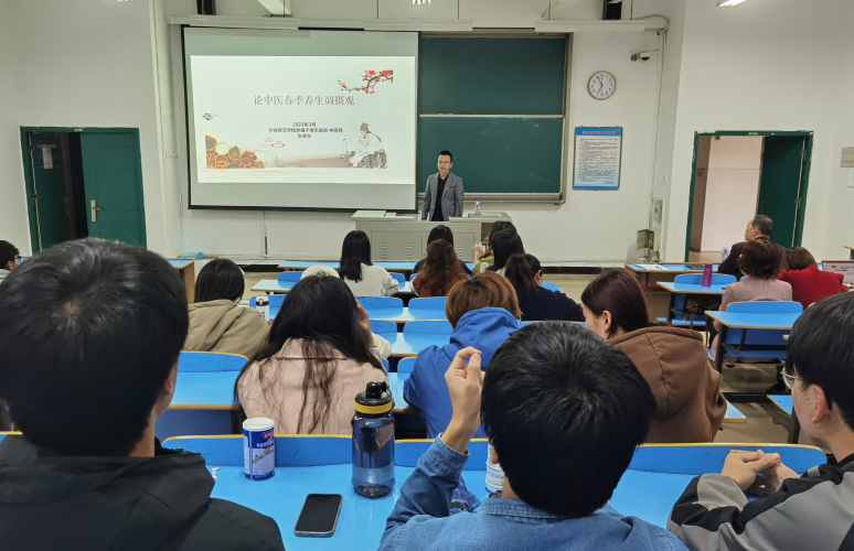 张荣东主任从养生的概念谈起,强调了中医养生具有增强体质、预防疾病、延缓衰老等现实意义,提出养生的基本法则是天人相应,顺应自然环境变化规律,他强调春季养生有几个要点:起居、性情、饮食、劳作、精欲等,