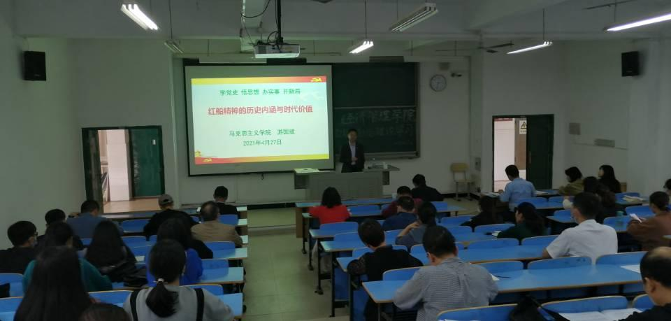 为推动党史学习教育走深走实,4月27日下午,公司邀请马克思主义公司经理游国斌教授给全院教职工和员工党员代表作“红船精神的历史内涵与时代价值”的专题讲座。