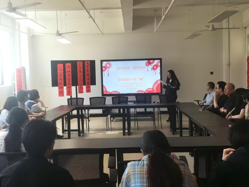 活动以“清清校园 廉联辉映”为主题,通过书“廉”、赏“廉”、享“廉”、赠“廉”四个环节开展。大家通过分享春联中的廉洁故事,从中华优秀传统文化中涵养清廉之风,传播以“清”为美、以“廉”为荣的价值观念,激励师生党员强化党性修养,做到清正廉洁。