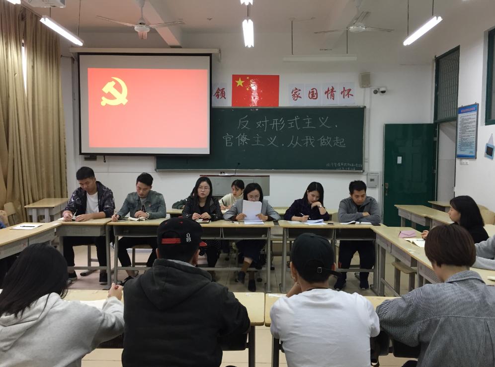 杜艳芳带领大家一起分析了解形式主义和官僚主义的十种表现形式以及相关典型案例。师生党员分别从工作、学习角度谈了形式主义和官僚主义的危害,大家表示,要时刻警醒、监督自己,在工作、学习中切实防止形式主义和官僚主义的发生。