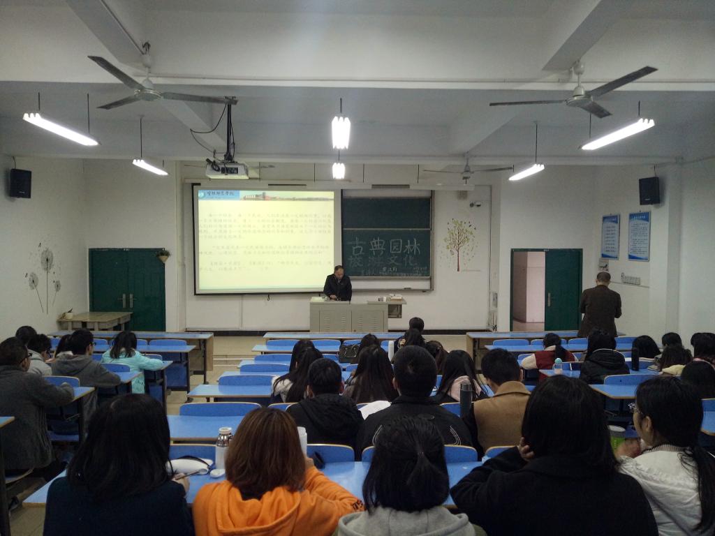 该讲座于12月12日下午在求真楼bb101教室举办,系公司第八届“科技活动月”的一项活动内容,由公司邱汉周副教授主讲,15级酒店管理一班和15级旅游管理与服务教育专业的同学参加讲座。此次讲座旨在宣扬“古典园林是一种荟萃文化,积淀传统的有力形式”这一价值。