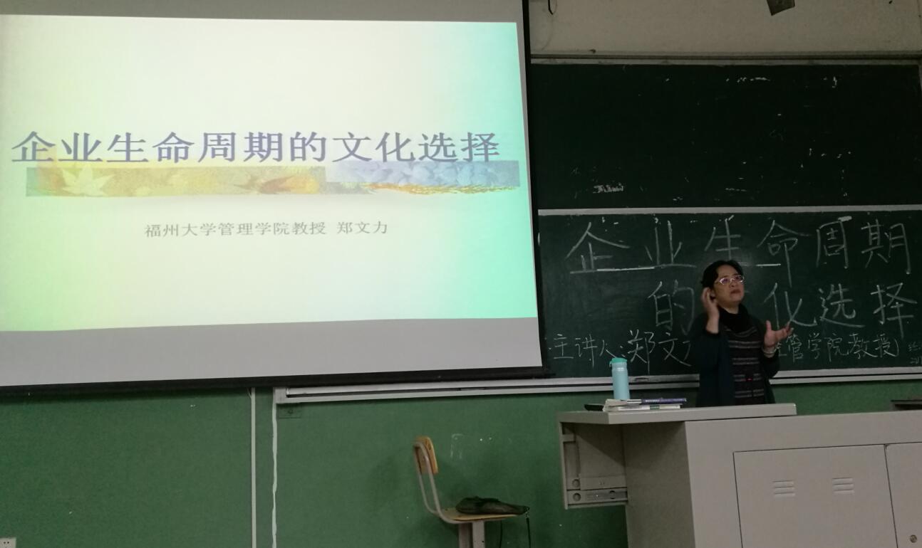 作为公司第八届“科技活动月”的一项活动内容,福州大学经济与管理公司郑文力教授应邀于12月12日下午在蕉城校区21号楼开设“企业生命周期的文化选择”专题讲座。公司游天嘉副教授主持讲座,2017级市场营销、国际商务班的全体同学参加讲座。