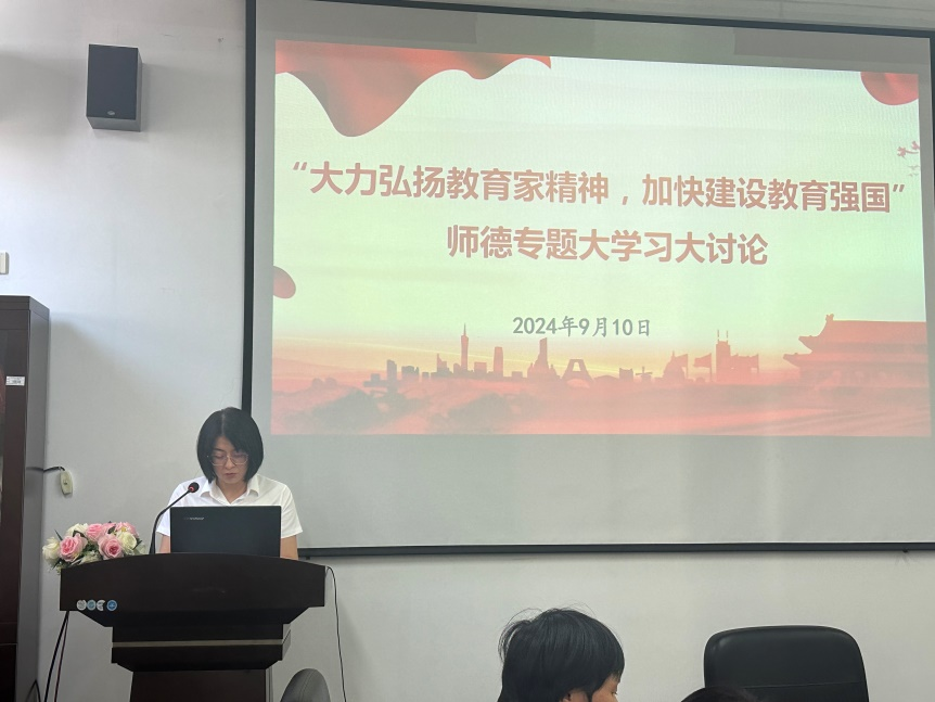 9月10日,组织教师围绕“大力弘扬教育家精神,加快建设教育强国”开展师德专题大学习大研讨,学习《关于弘扬教育家精神加强新时代高素质专业化教师队伍建设的意见》、观看《教育家精神》系列纪录片第二集《言为士则 行为世范》、周俪等四位教师结合个人实践分享立德树人的生动实践和经验体会;组织教职工参加PA平台庆祝第40个教师节暨先进表彰会;教师节前后,组织公司教师通过公司宣传栏、公司网站、微信公众号等,学习教师典型,营造崇尚先进、学习先进、争当先进的良好氛围。